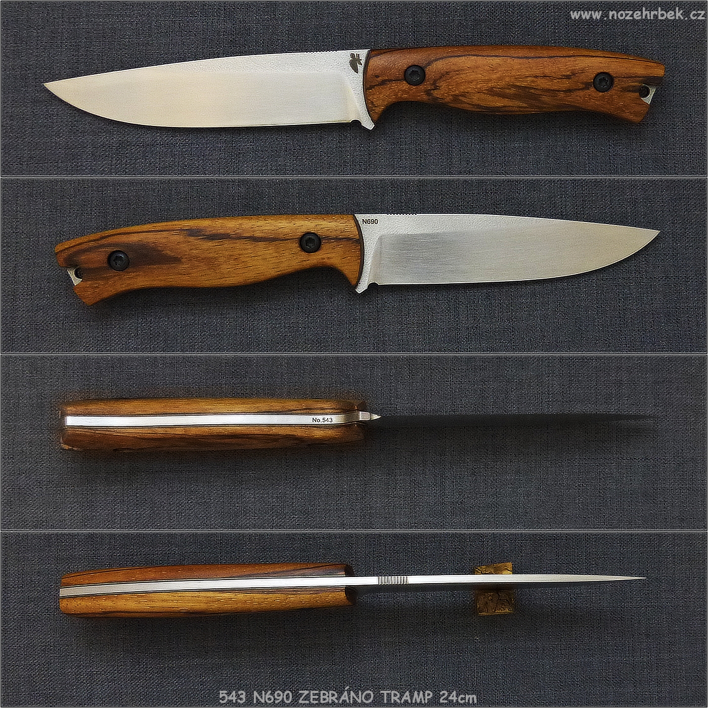 Vítám Vás na stránkách, kde prezentuji mnou vyrobené nože. Nože vyrábím z ušlechtilých nožířských ocelí, nejčastěji z Bohler N690, ELMAX, RWL34, D2 , Damasteelu a jiných. Kaleno je v profi vakuové kalírně. Taky používám povlakování čepelí metodou DLC / diamond like carbon/. Na ručky používám exotické i naše dřeviny, G10, Mikartu, stabilizovaná dřeva a podobné materiály. Pokud máte jakýkoliv dotaz na koupi nože, tak mne kontaktujte telefonicky nebo e-mailem, rád odpovím.