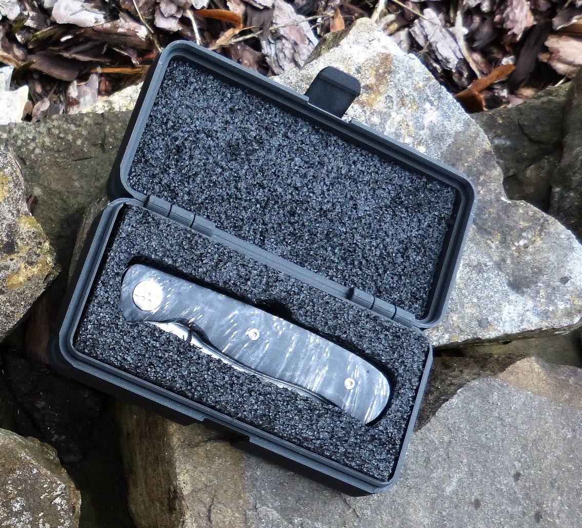 Zavírací nože jsou v PLA krabičce, Damaškové jsou v koženkovém pouzdře, nebo dárkové PLA krabičce.